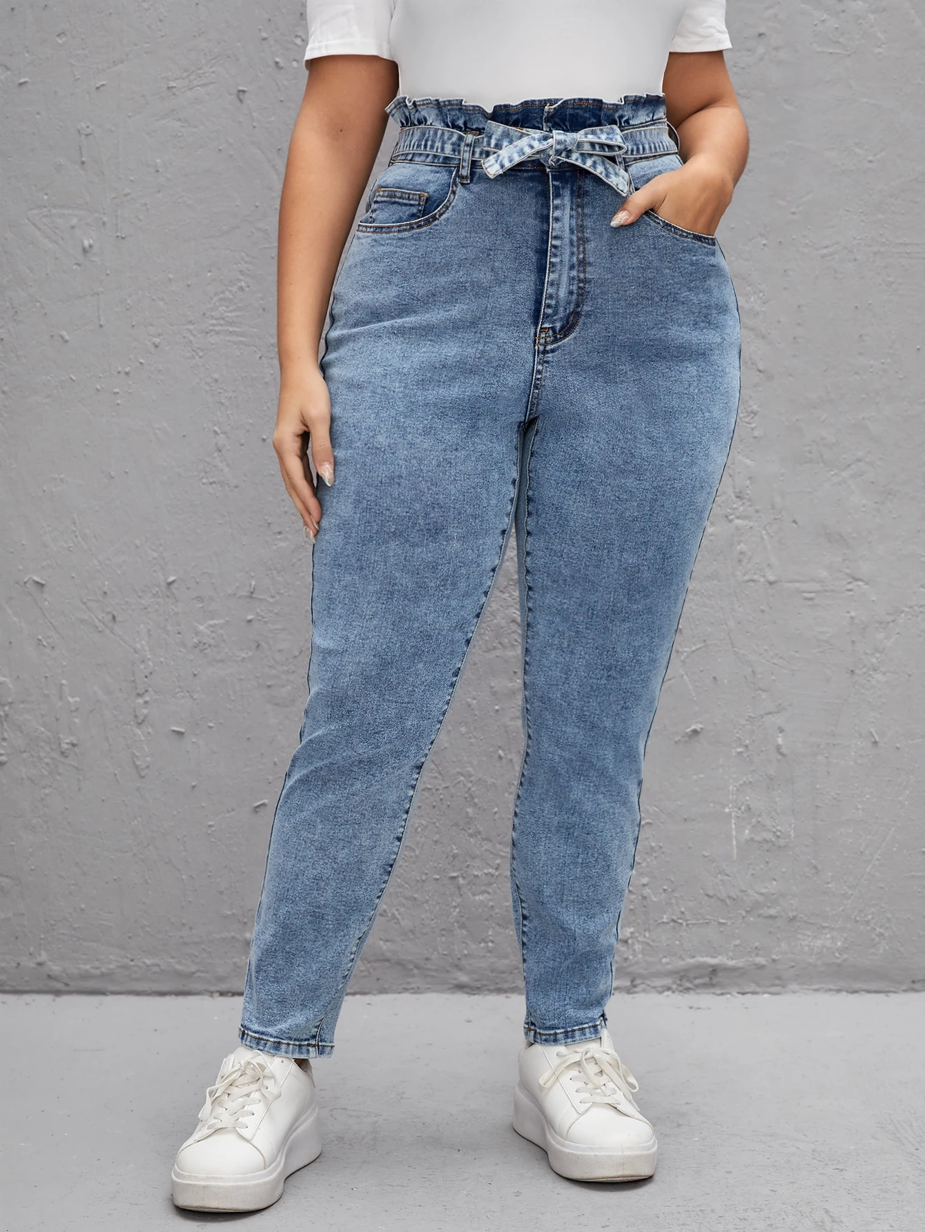 Jeans de cintura con volante con cinturón