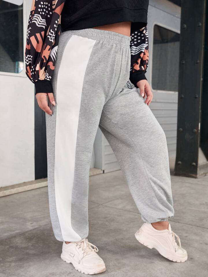 Pantalones deportivos con diseño de parche con costura lateral en contraste