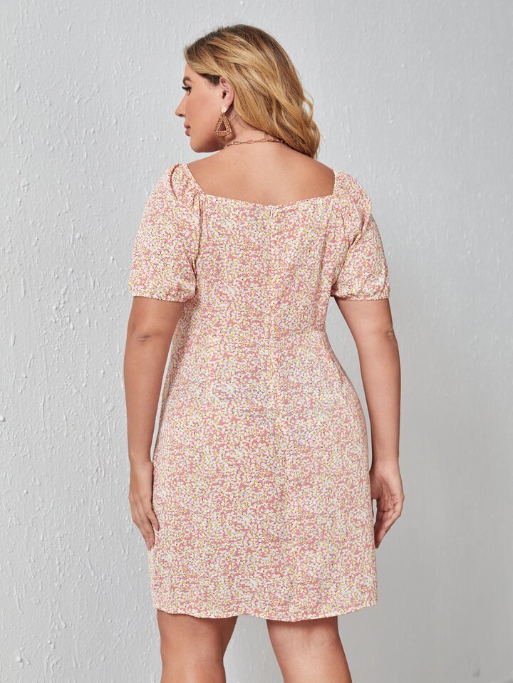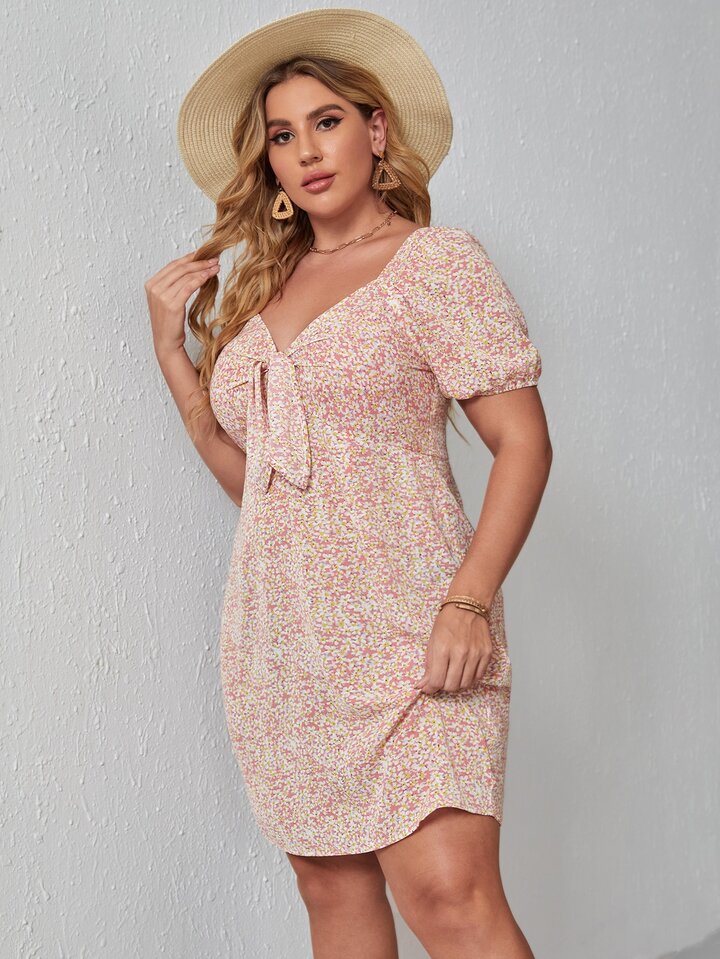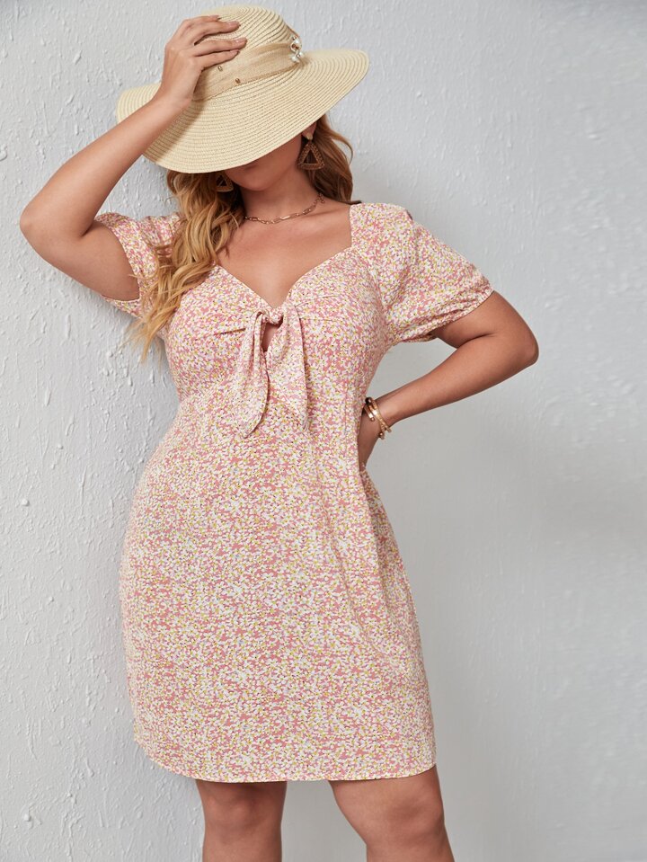 Vestido con abertura delantera con nudo floral