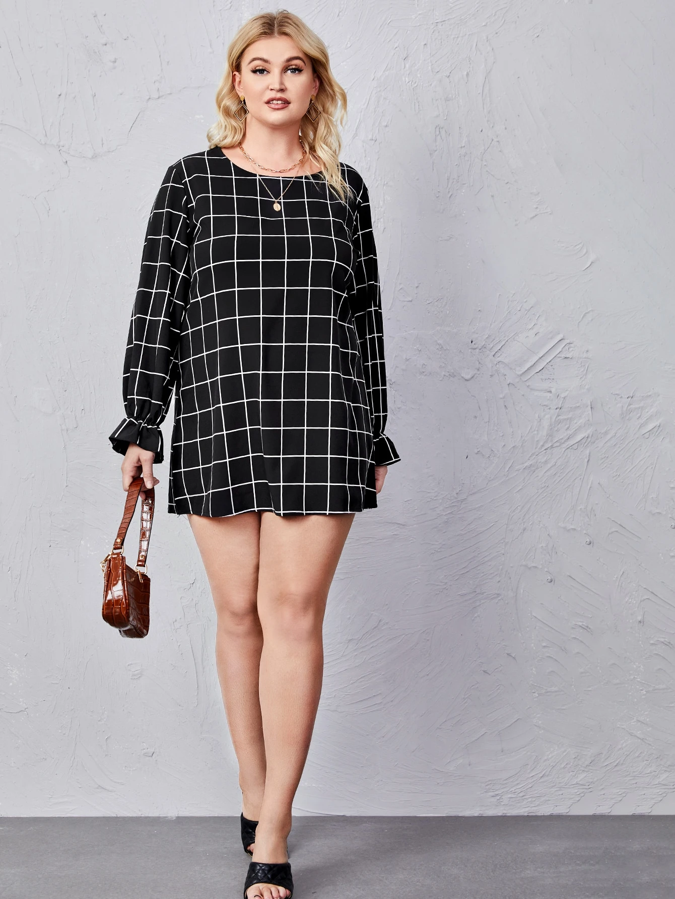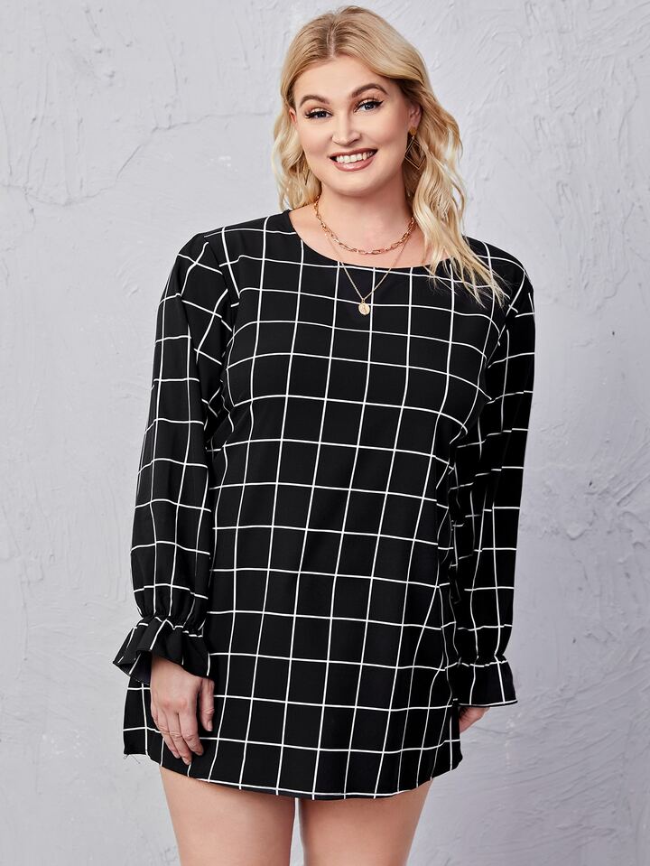Vestidos Tallas Grandes Volante A cuadros Casual