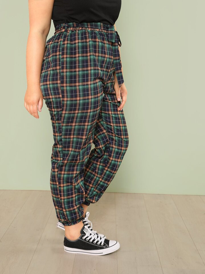 Pantalones cónico con estampado de cuadros de talla grande