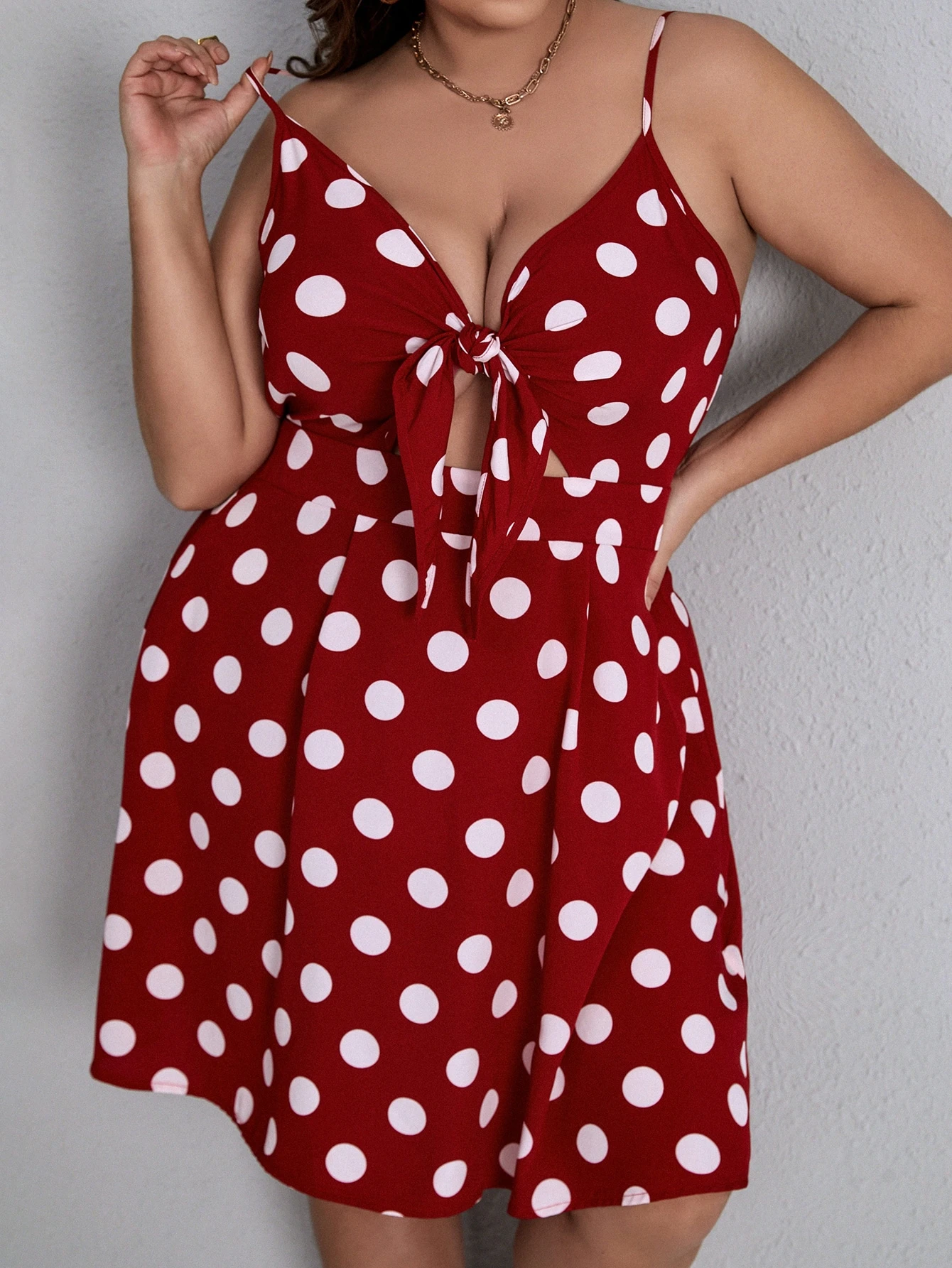 Vestido de tirantes con estampado de lunares con nudo delantero