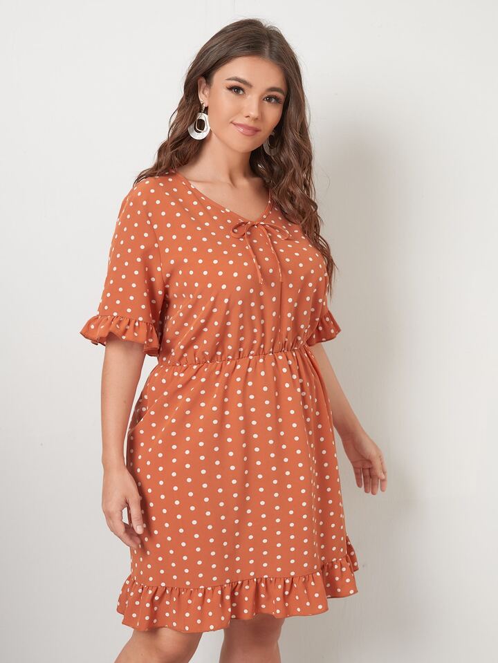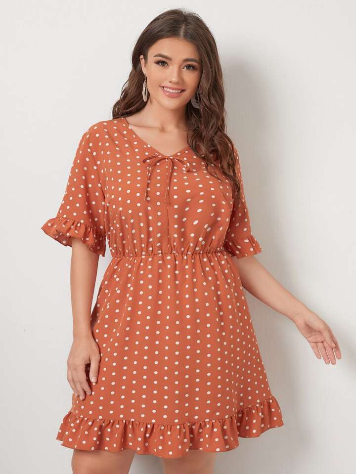 Vestidos Tallas Grandes Volante rígido Lunares Casual