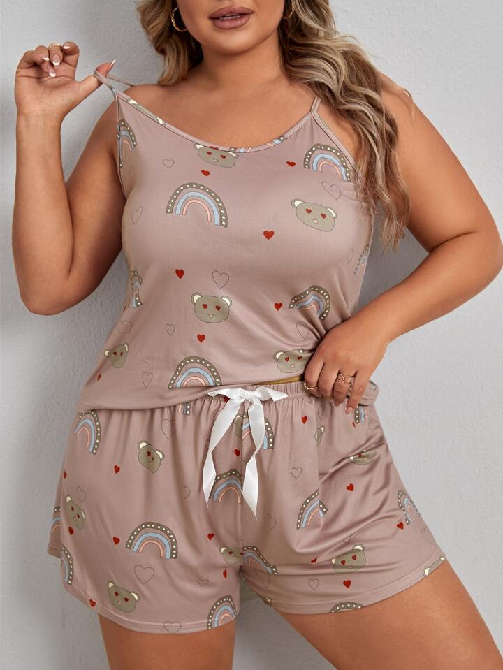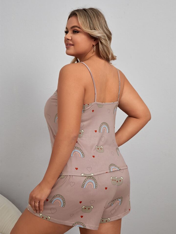 Conjunto de pijama de tirantes de arcoíris & con estampado de oso