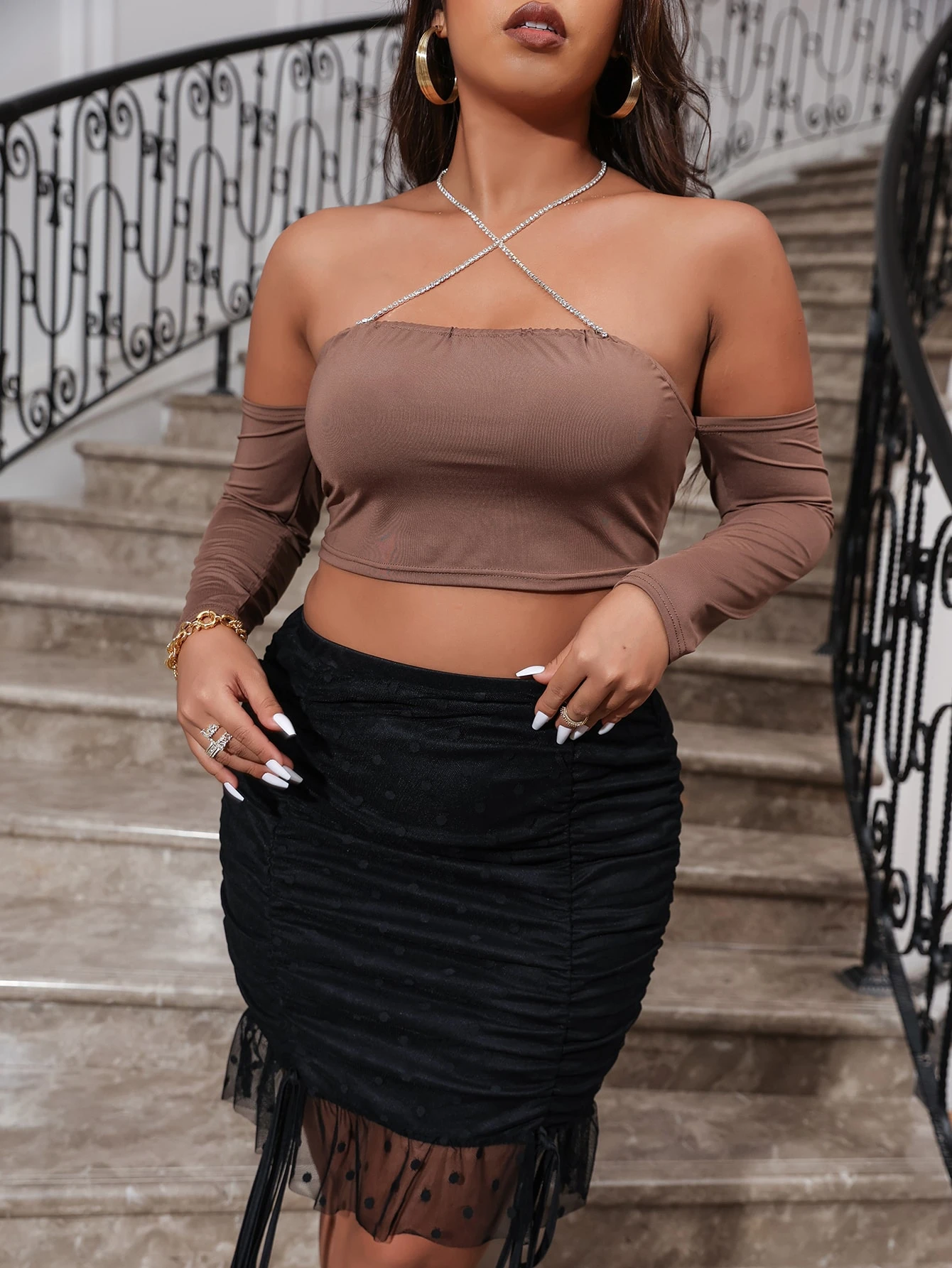 Top corto con diamante de imitación con cadena con tira cruzada de espalda abierta