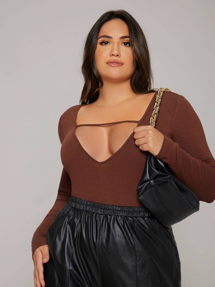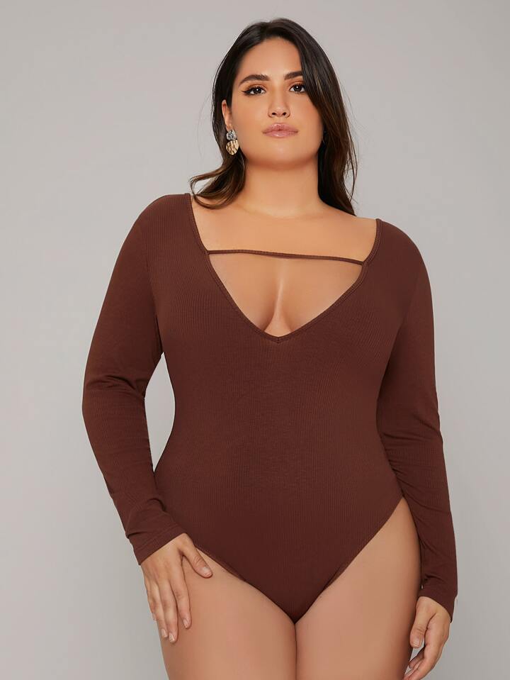 Body tejido de canalé con abertura