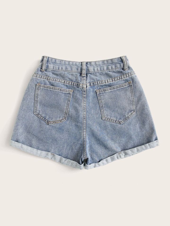 Shorts mezclilla con lavado descolorido bajo de doblez - grande