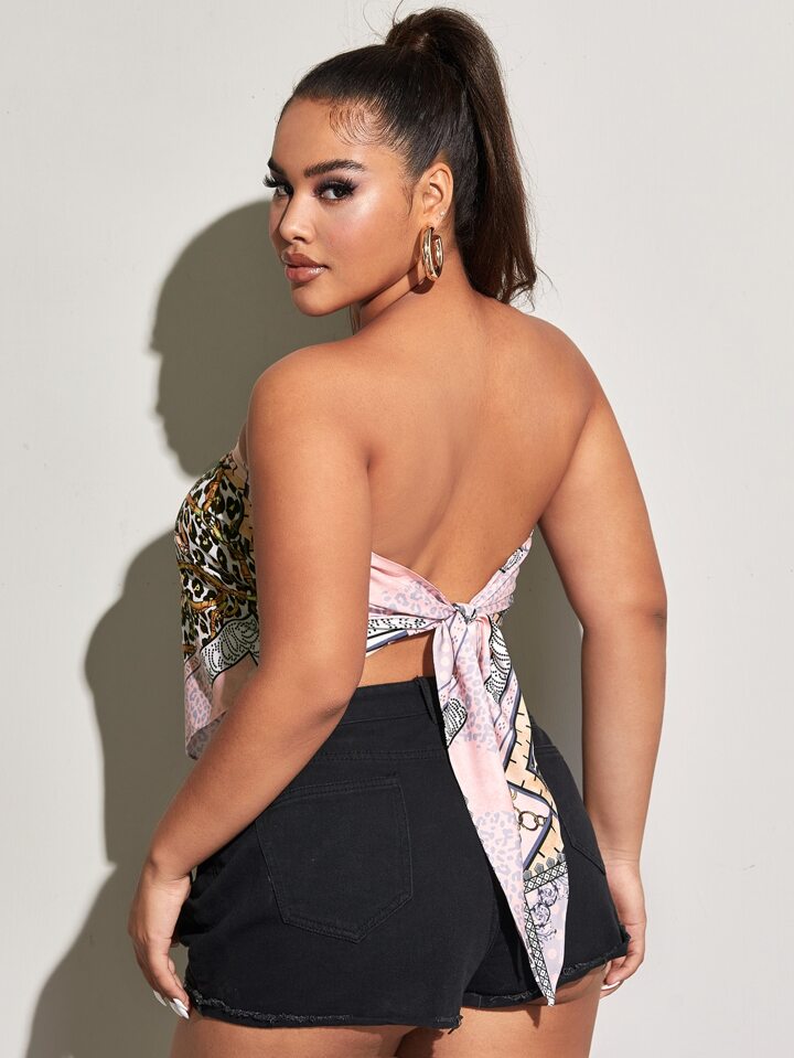 Top tubo pañuelo con cordón trasero fruncido delantero