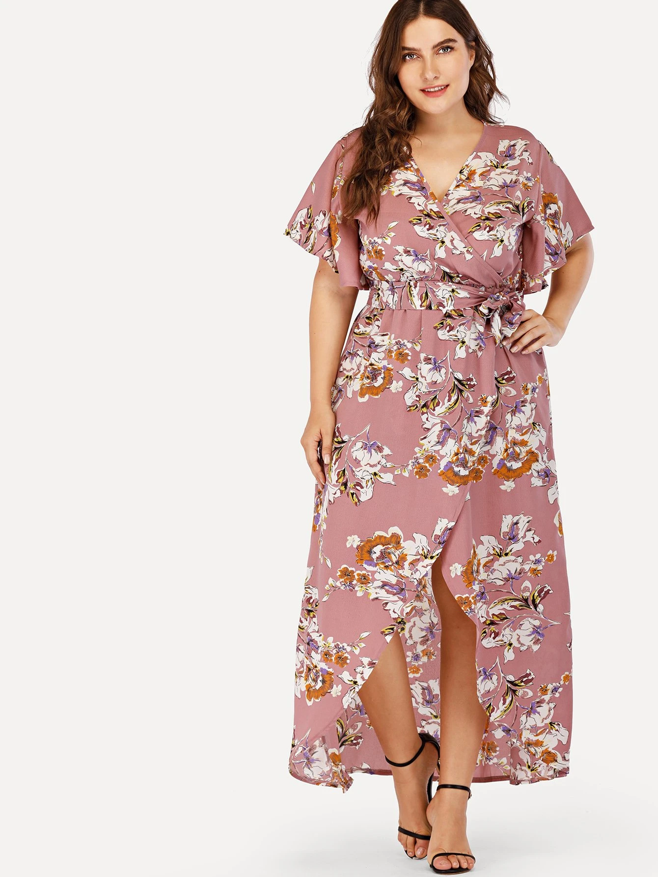 Vestido con estampado floral de cintura con lazo de talla grande