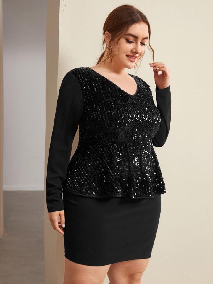 Conjunto top peplum con lentejuelas con falda con abertura trasera
