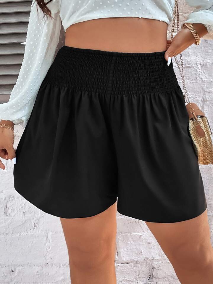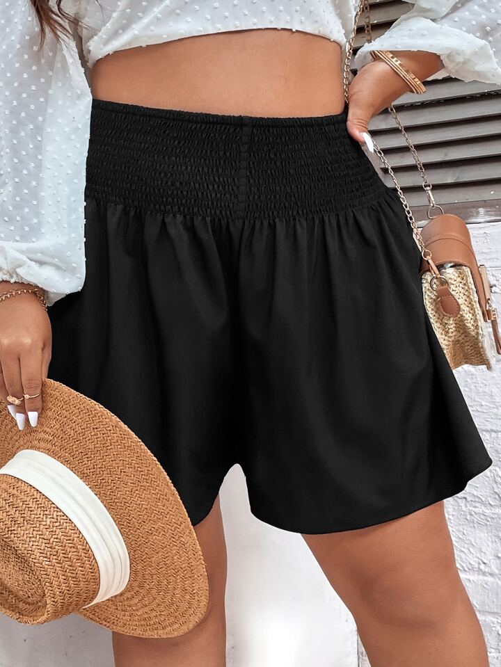 Shorts de pierna ancha de cintura fruncido