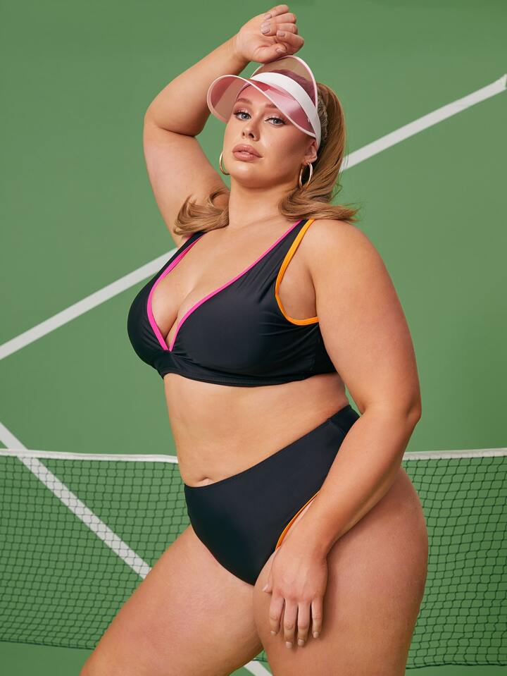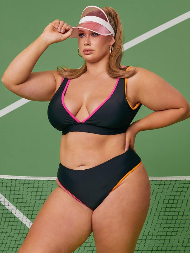 Conjunto de bikini de talla grande con borde de contraste, para playa de verano