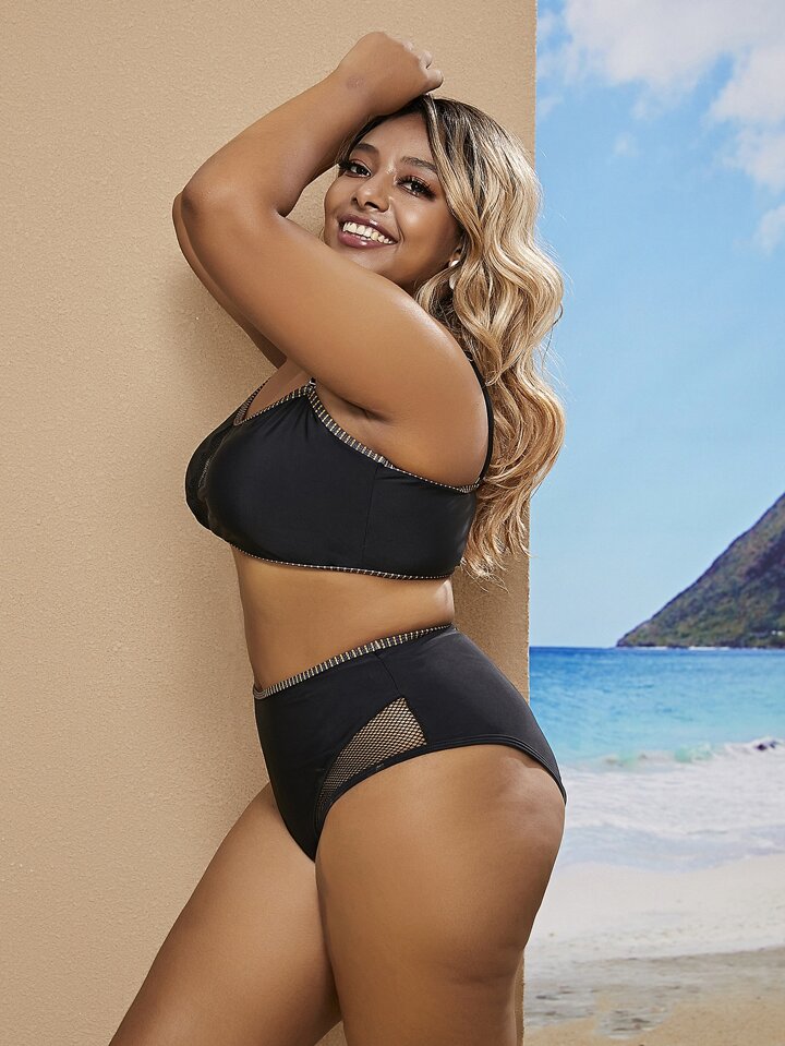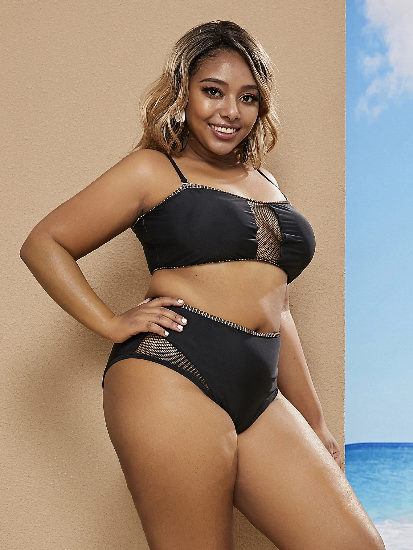 Conjunto de bikini de malla de contraste de talla grande para playa de verano