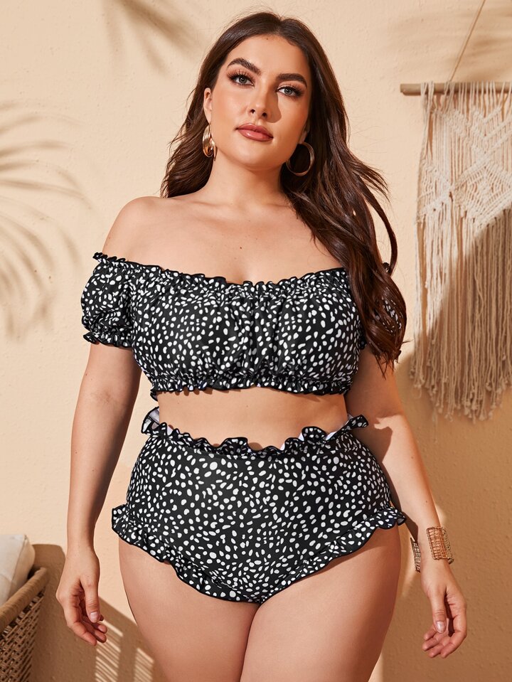 Conjunto de bikini bardot con volantes de estampado dálmata talla grande para playa de verano