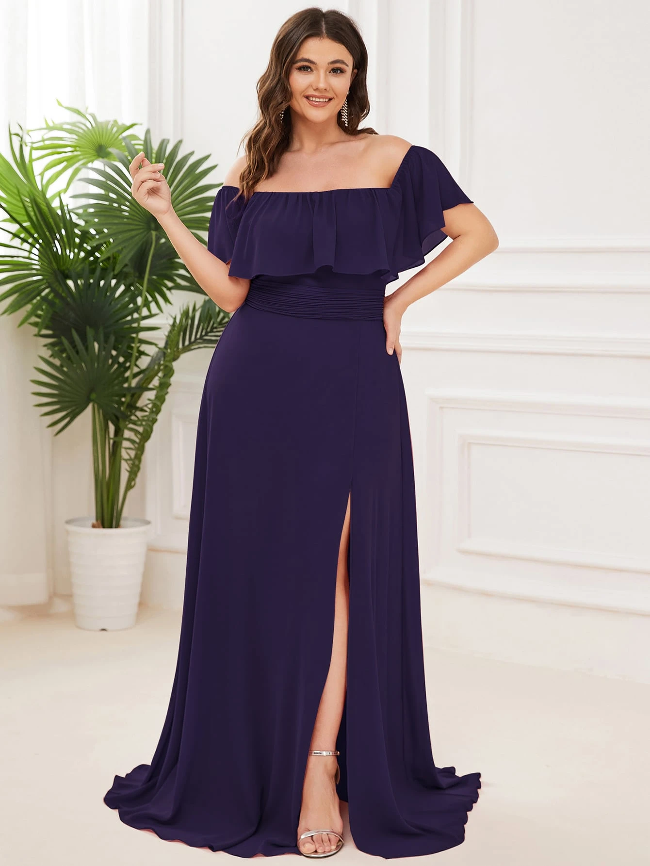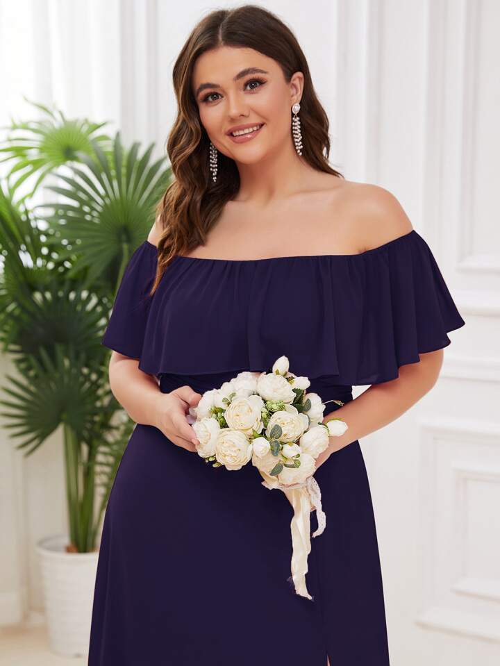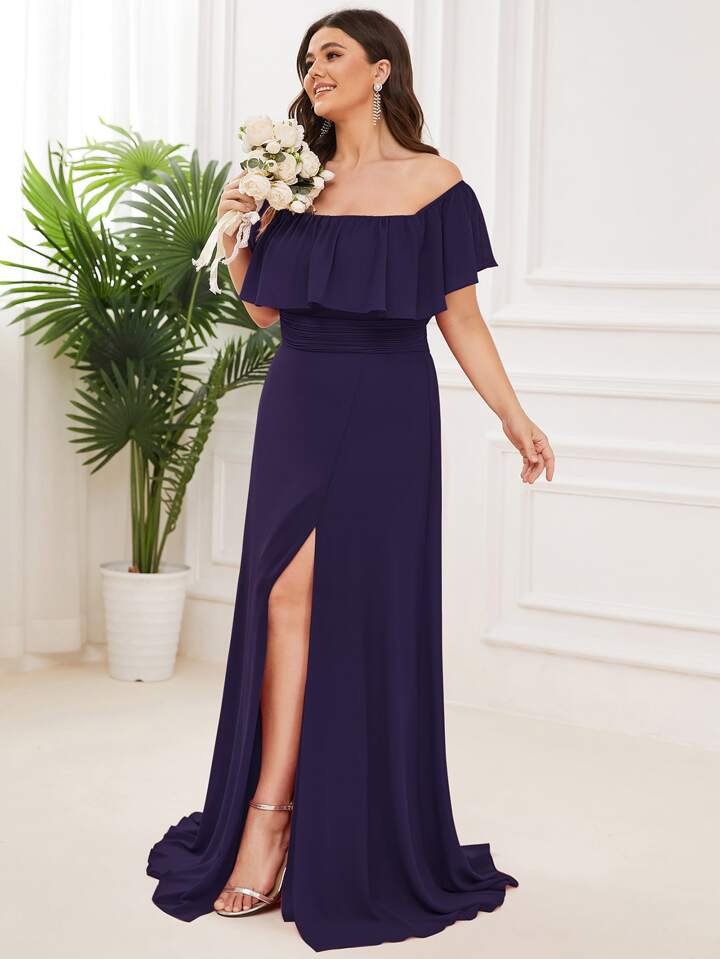 Vestido de dama de honor de hombros descubiertos elegante de talla grande