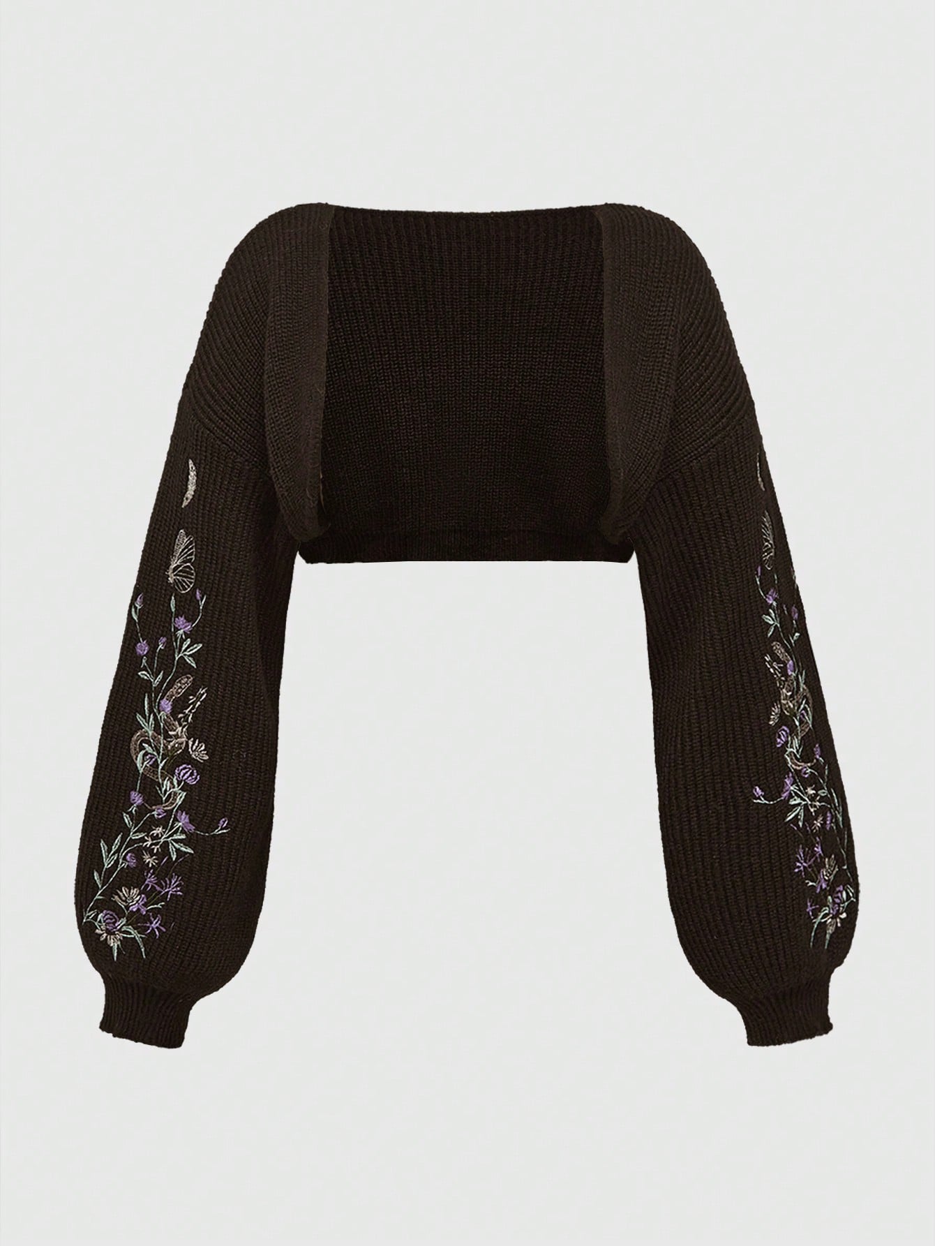 Goth Chaqueta corta de cárdigan con bordado de serpiente botánica gótica de talla grande