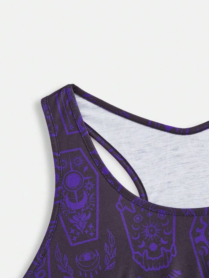 Goth Conjunto de pijama de talla grande de pantalones cortos en general de impresión digital con temática gótica de constelaciones