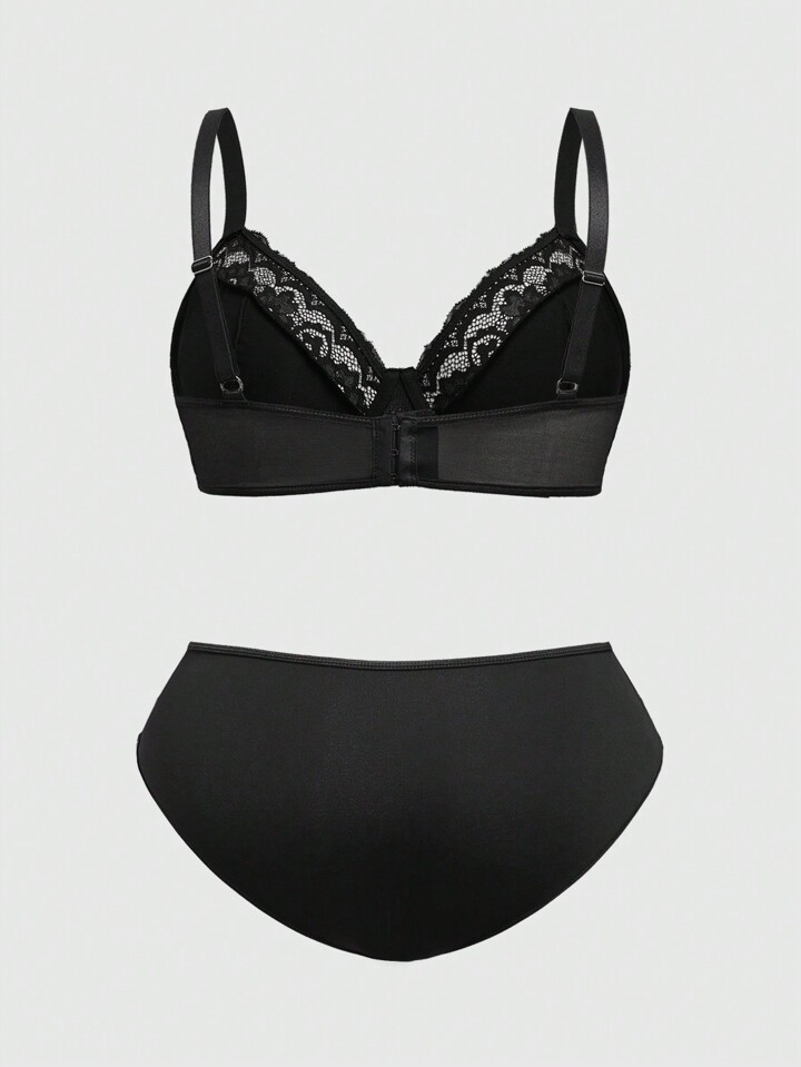 Goth Conjunto de lencería sexy de 3 piezas en talla grande, incluye sujetador inalámbrico de triángulo con patchwork de encaje gótico, braga y portaligas