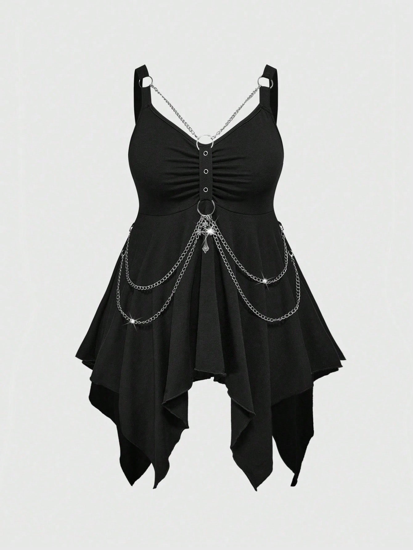 Goth Top y camiseta de tirantes con bajo asimétrico, cadena y decoración de cruz, talla grande estilo gótico punk