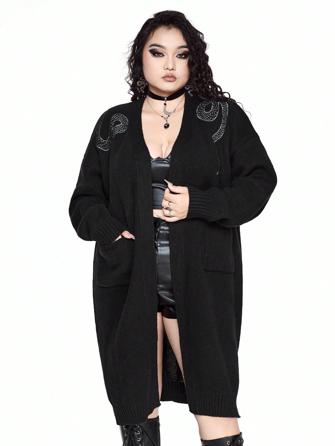 Goth Cárdigan casual largo con bordado de serpiente y flores para tallas grandes