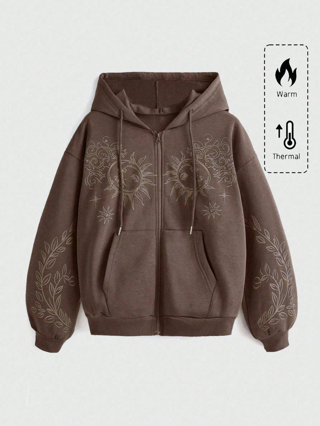 Sudadera con cremallera con estampado de sol y hojas de estilo hippie vintage para talla grande, para escuela, top de manga larga para graduación, regreso a clases, ceremonia de graduación, mujeres maestras, sudadera de regreso a clases, otoño/invierno