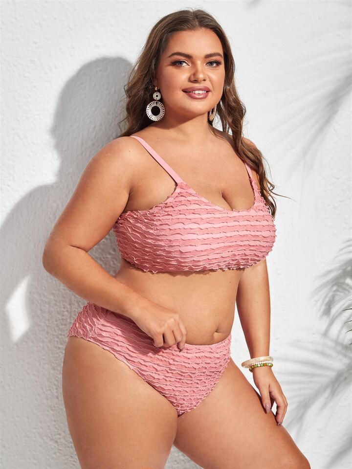 Conjunto de bikini de talla grande con detalles de ribete de lechuga para playa de verano