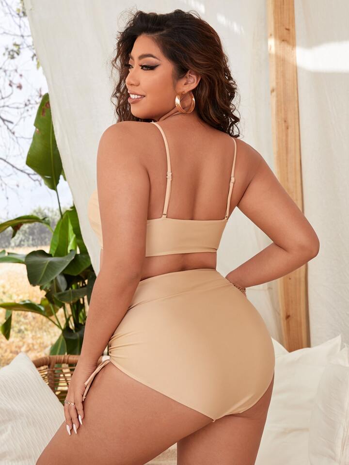 Conjunto de bikini de talla grande con cordón liso, para verano en la playa