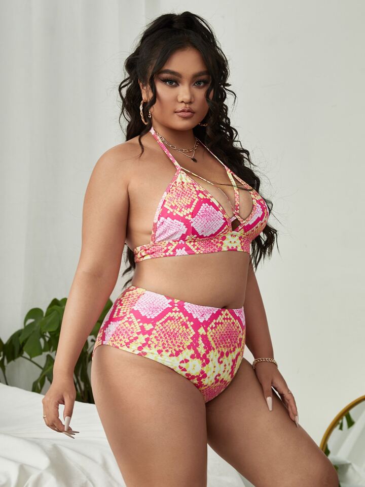 Conjunto de bikini de talla grande con estampado de piel de serpiente y cruzado, para verano en la playa