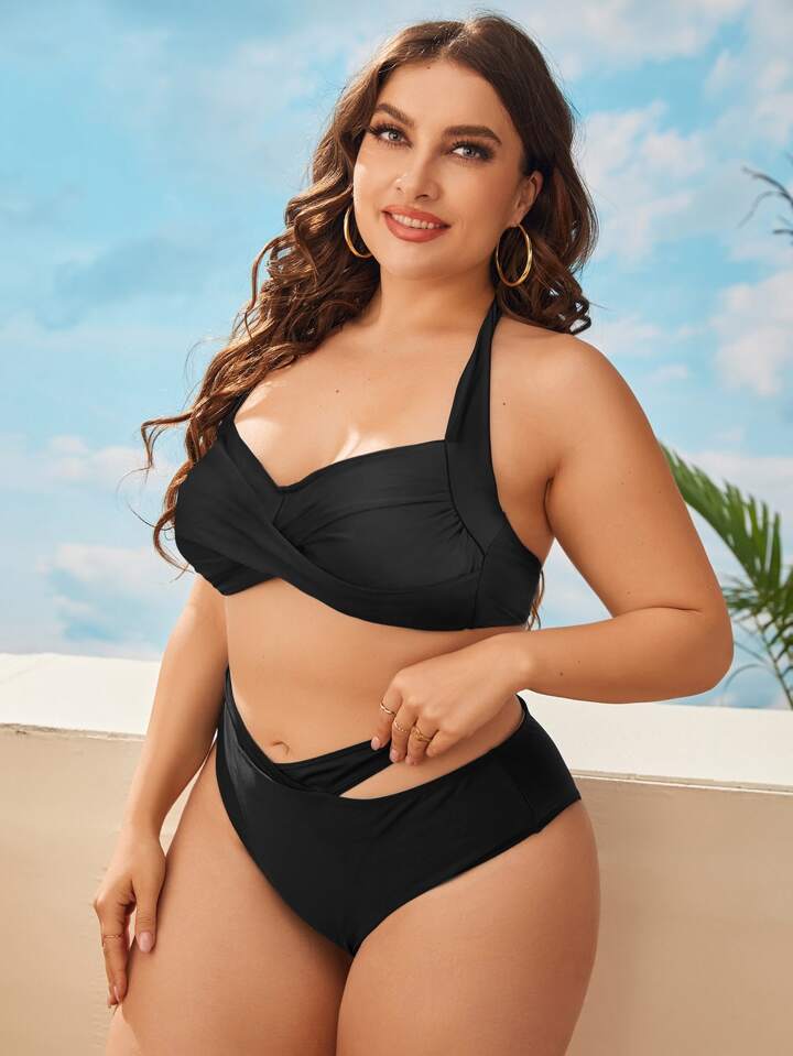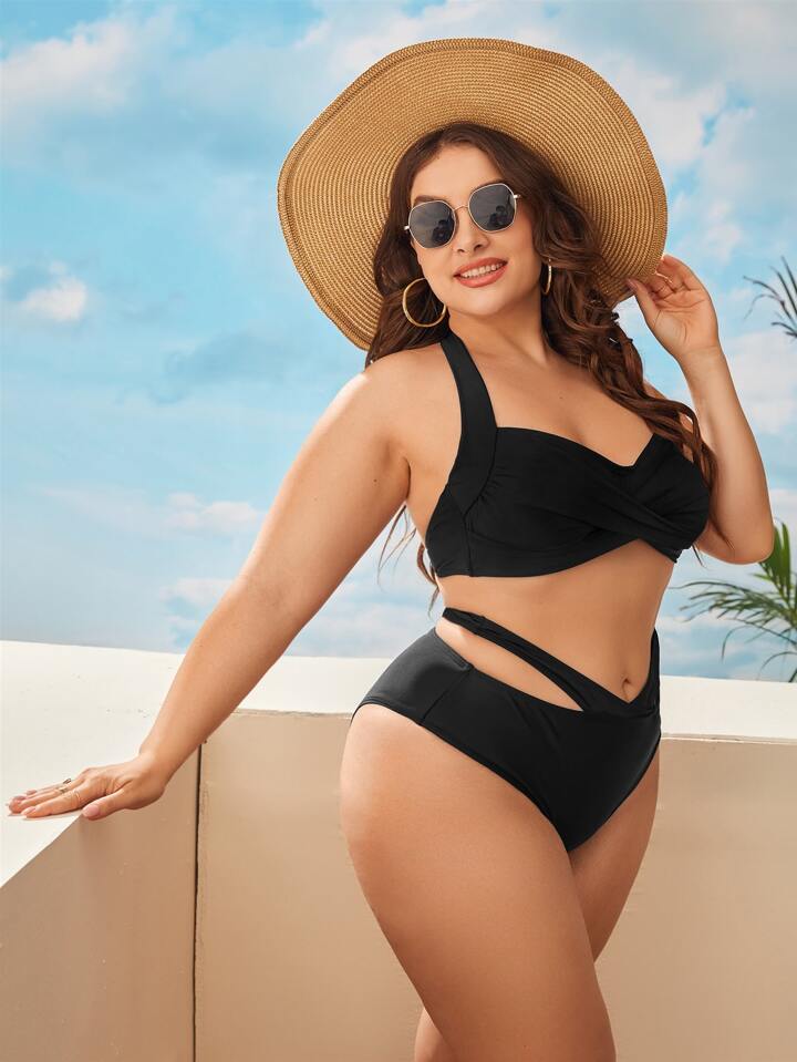 Conjunto de bikini sólido de talla grande con recorte, para playa de verano