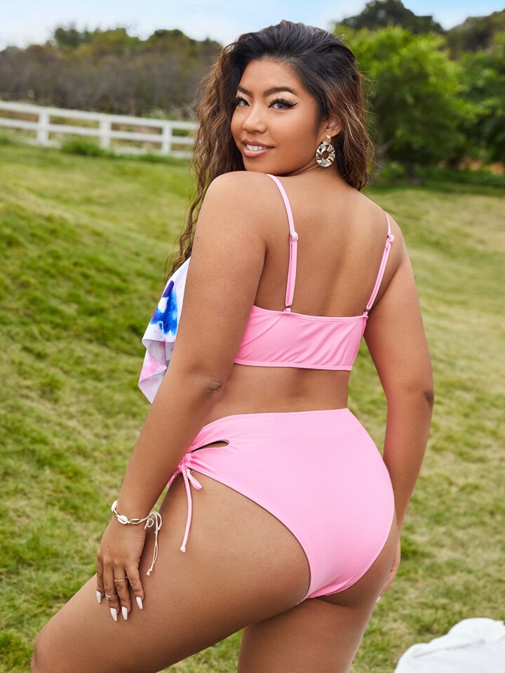 Conjunto de bikini de talla grande con diseño teñido y dobladillo diagonal para verano en la playa