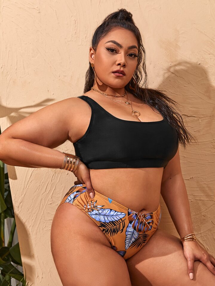 Conjunto de bikini tropical talla grande para playa de verano