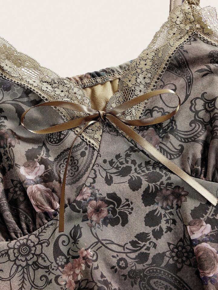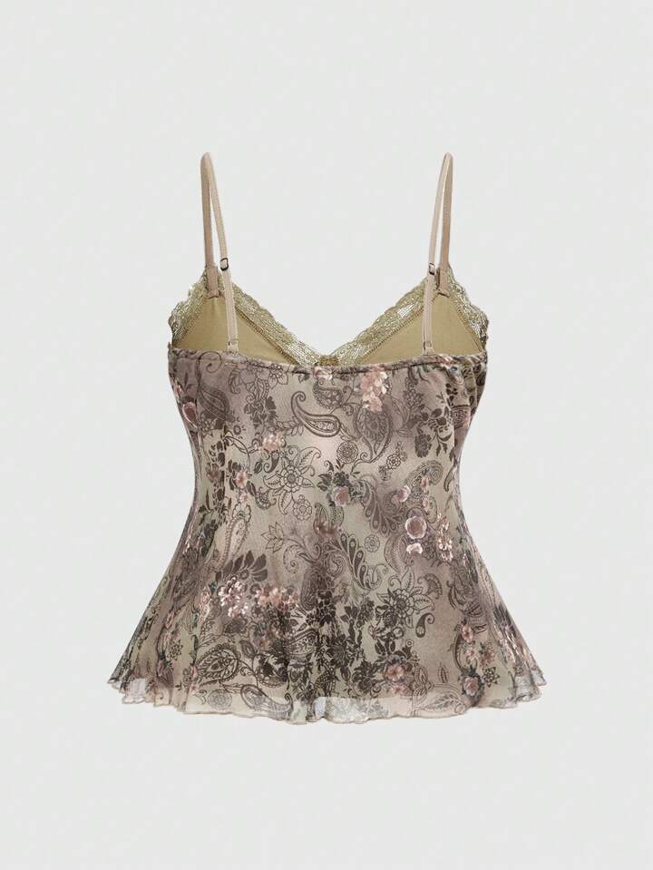 Conjunto de camisola y top sin mangas en talla grande, estilo vintage bohemio hippie, con estampado de paisley y flores, patchwork de encaje, cordón de cierre y bajo asimétrico