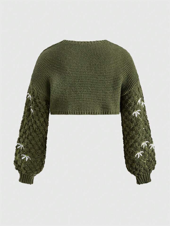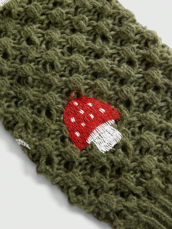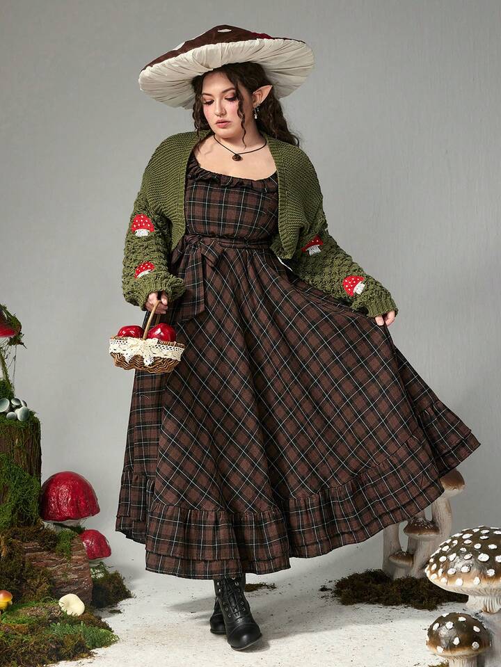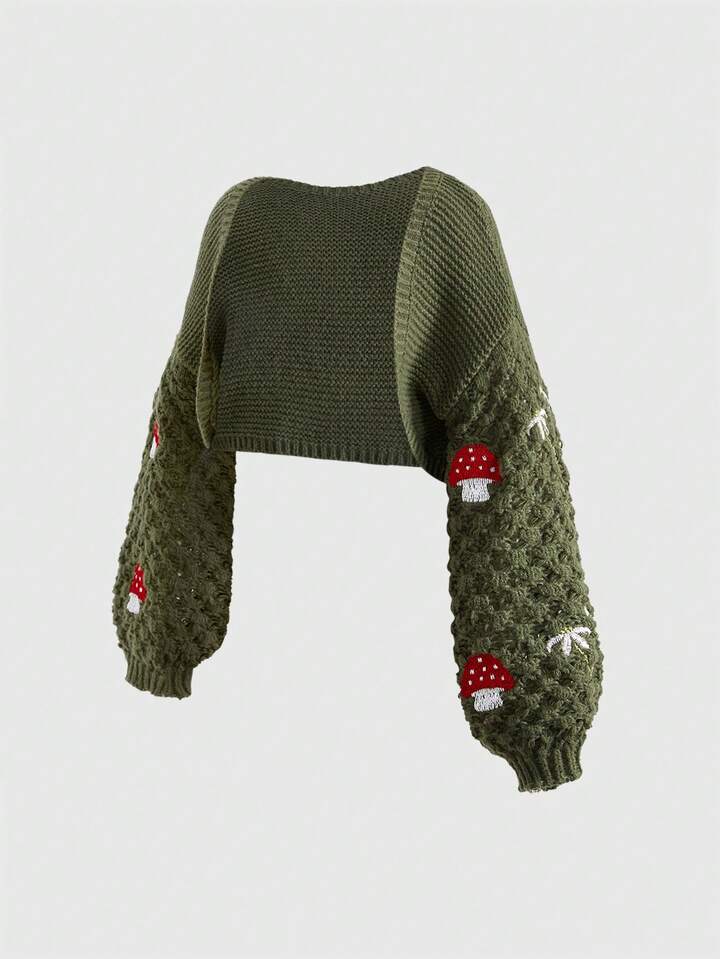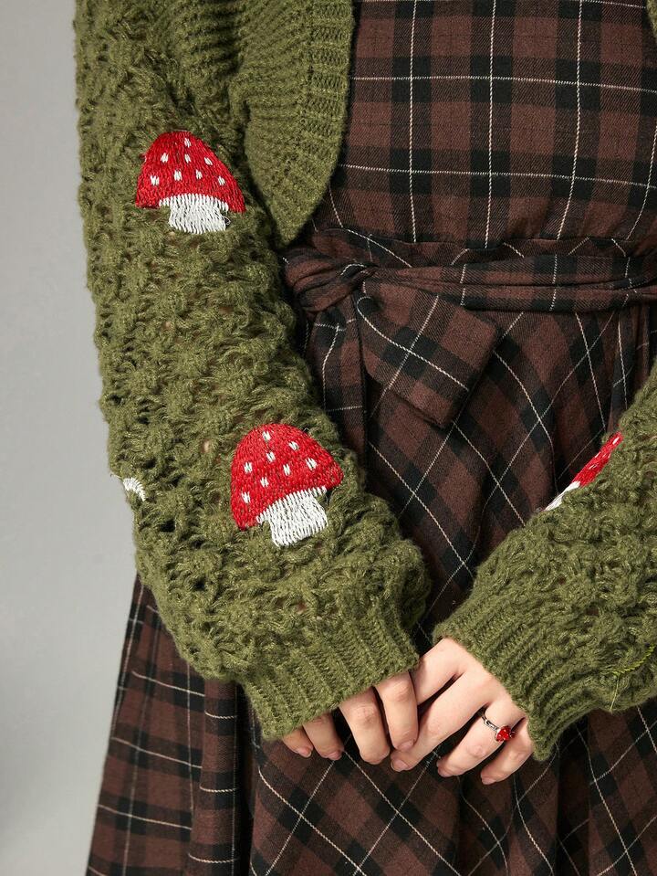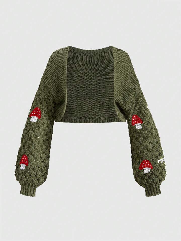 Cárdigan de punto de manga larga corto con estampado de setas y flores en estilo vintage fairycore, talla grande, para otoño/invierno