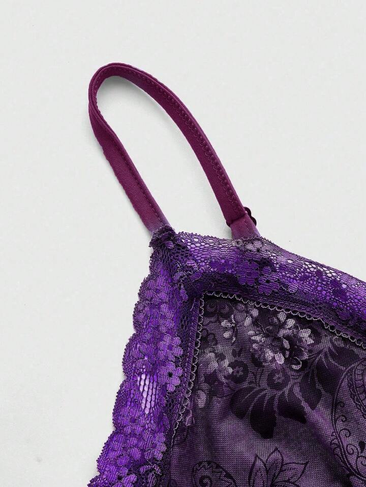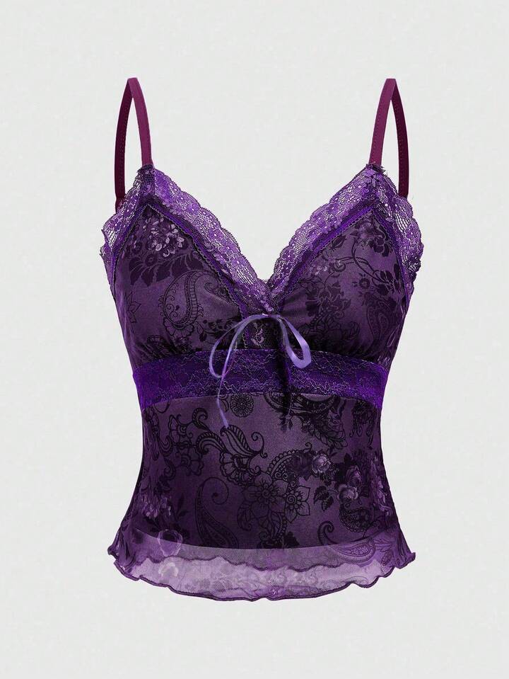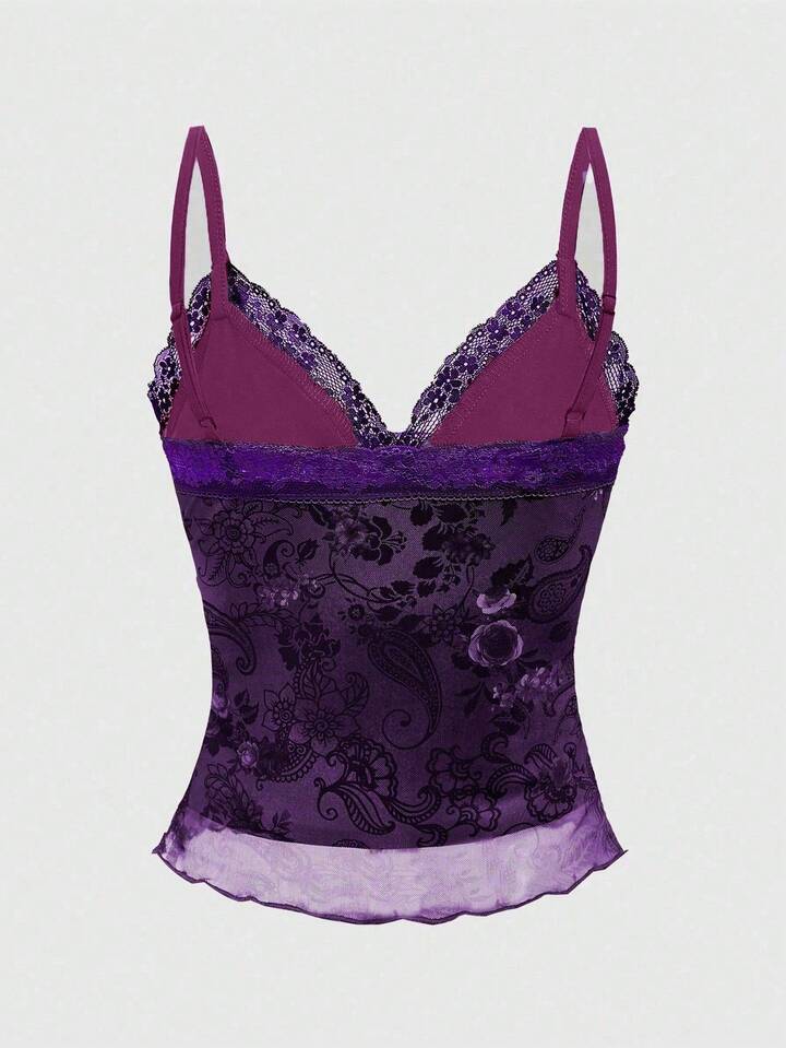 Top de tirantes y camiseta de talla grande con estampado vintage hippie de paisley y flores, con encaje y parches