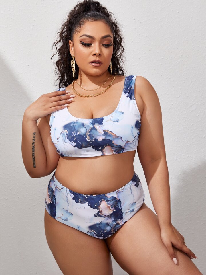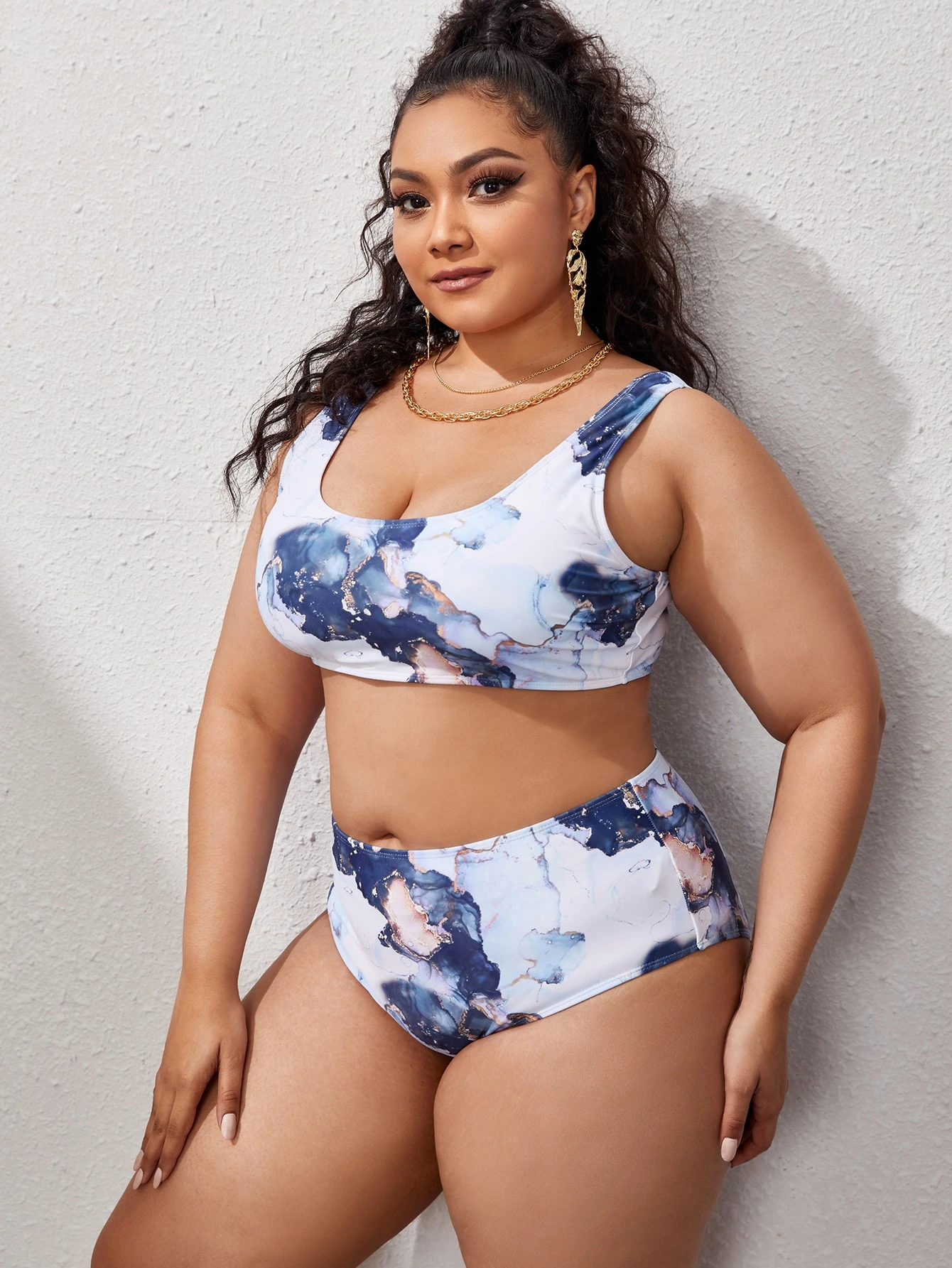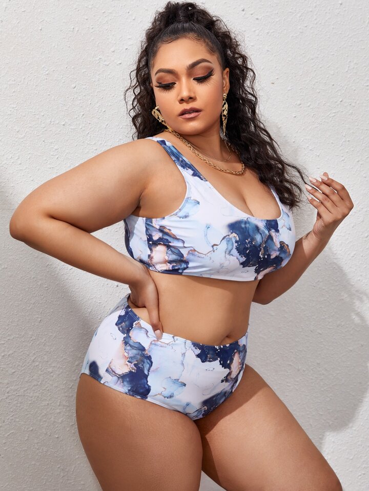 Conjunto de bikini de tallas grandes de colores acuarela para playa de verano