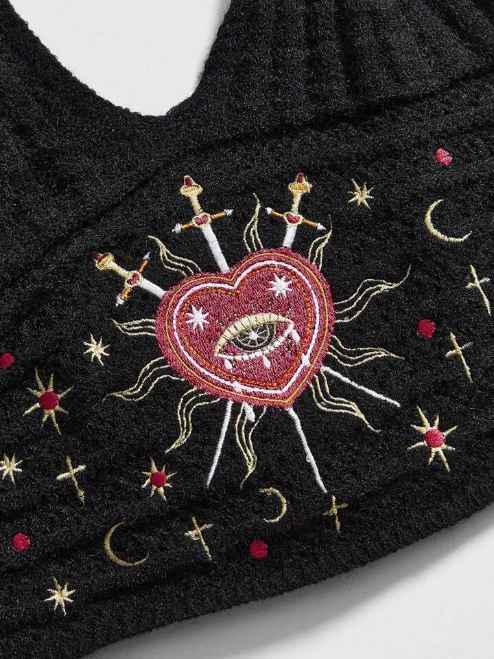 Hippie Top de punto tipo bohemio, gótico e hippy con corazón, luna y estrella bordados, con cuentas, para mujer talla grande, ideal para vacaciones