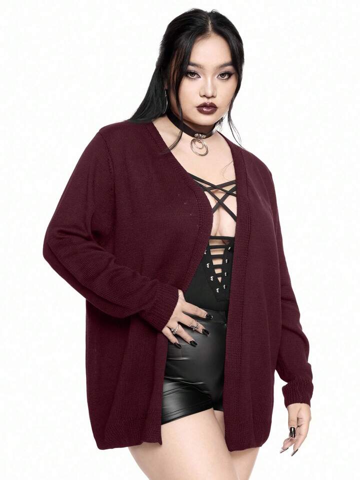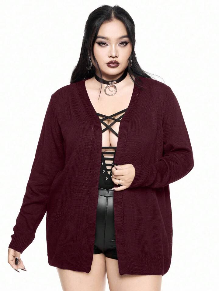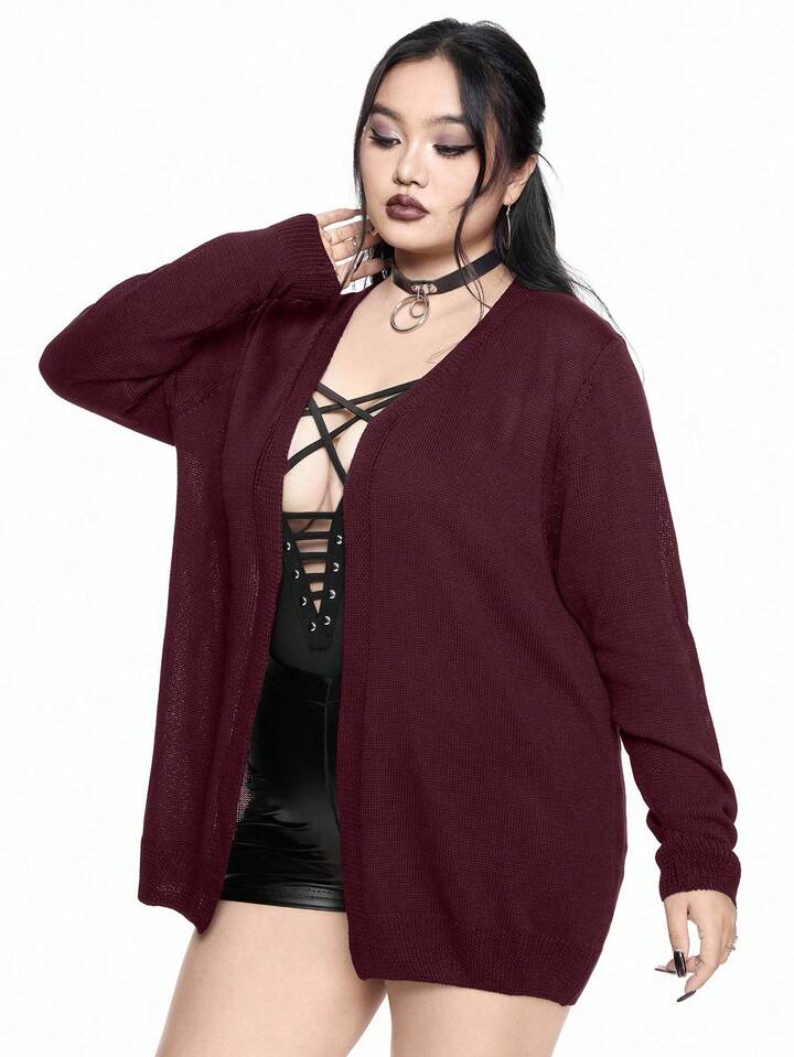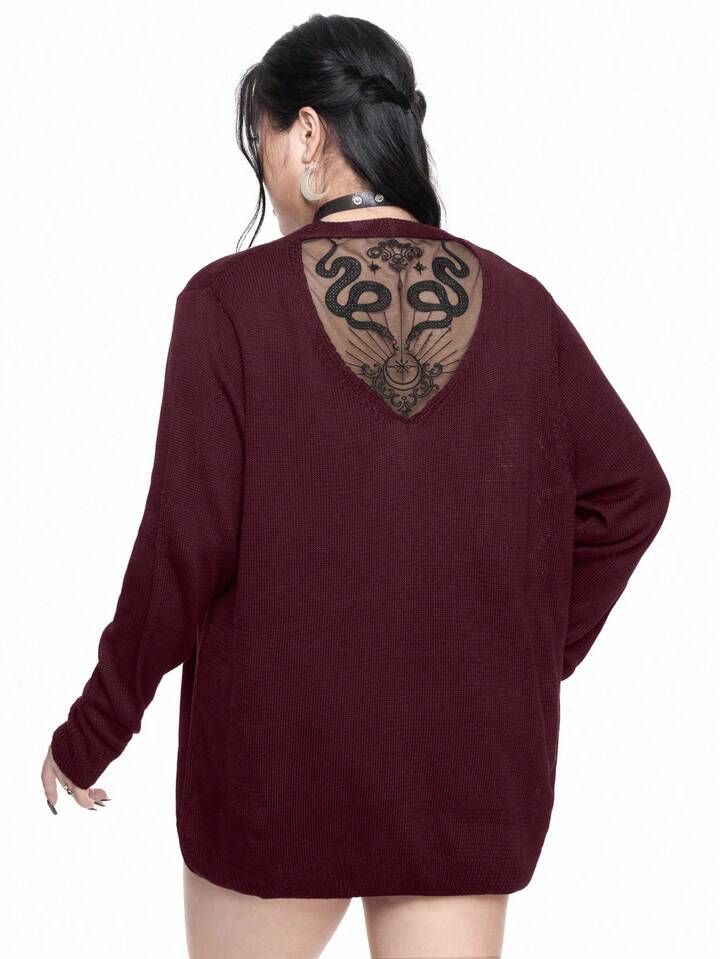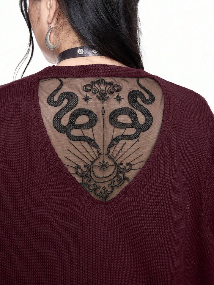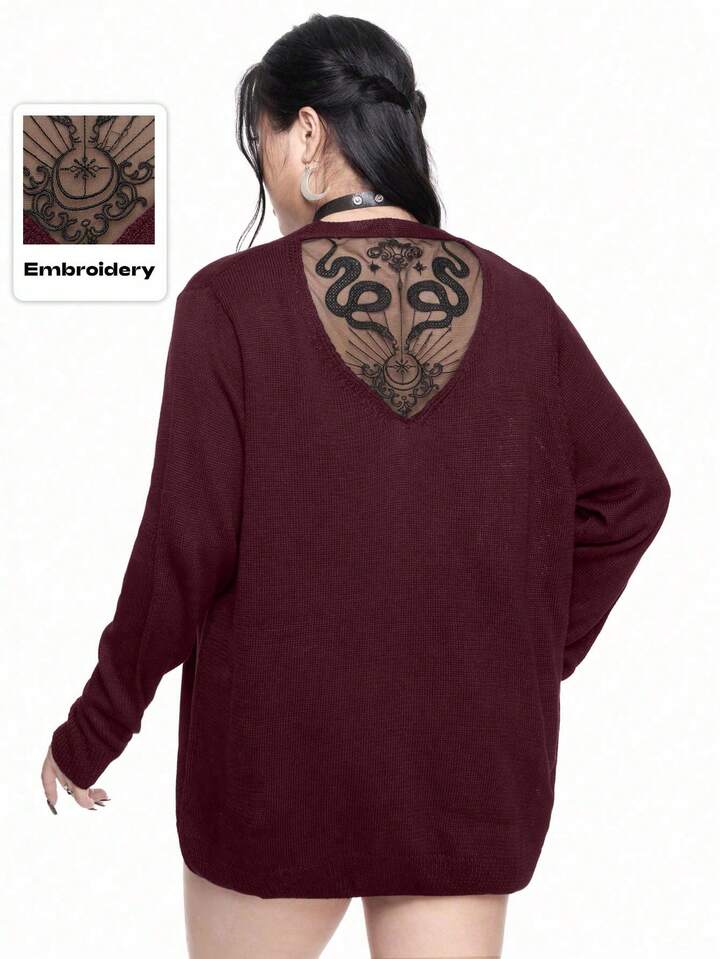 Goth Cárdigan delgado de talla grande para mujer con bordado de piel de serpiente y flores en estilo gótico, con parches de malla