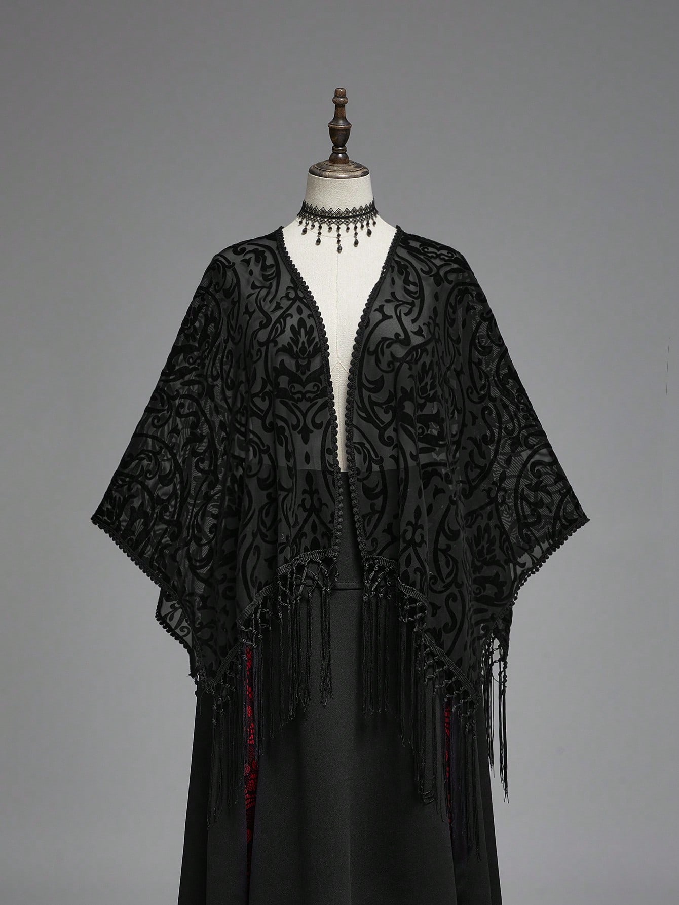 Goth Blusa de cardigan con flecos asimétricos y textura estampada en talla grande para mujer, estilo gótico retro con hombros sin costuras