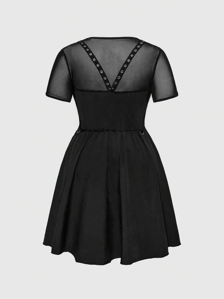 Goth Vestido corto negro con tirantes de estilo gótico vintage para mujer talla grande