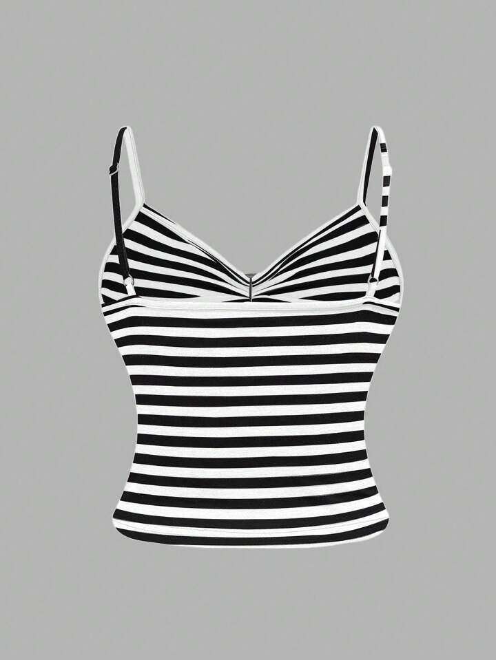 Parte superior de camisola ajustable con hebilla metálica redonda de doble color a rayas para mujer de talla grande