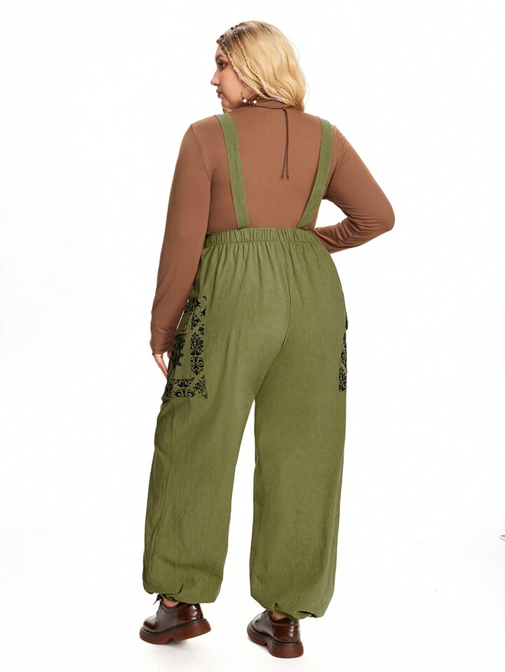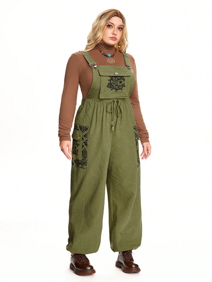 Pantalones tipo bata con estampado de remolino y paisley de estilo hippie para mujer de talla grande