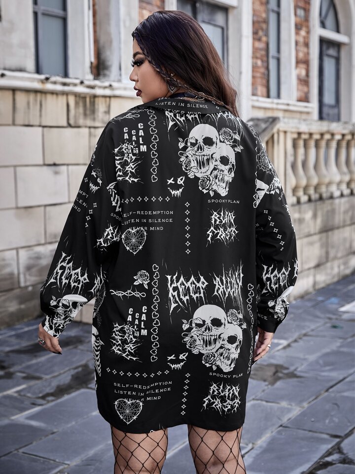 Camisa con gráfico de calavera y letras sin cinturón, para la escuela (talla grande)