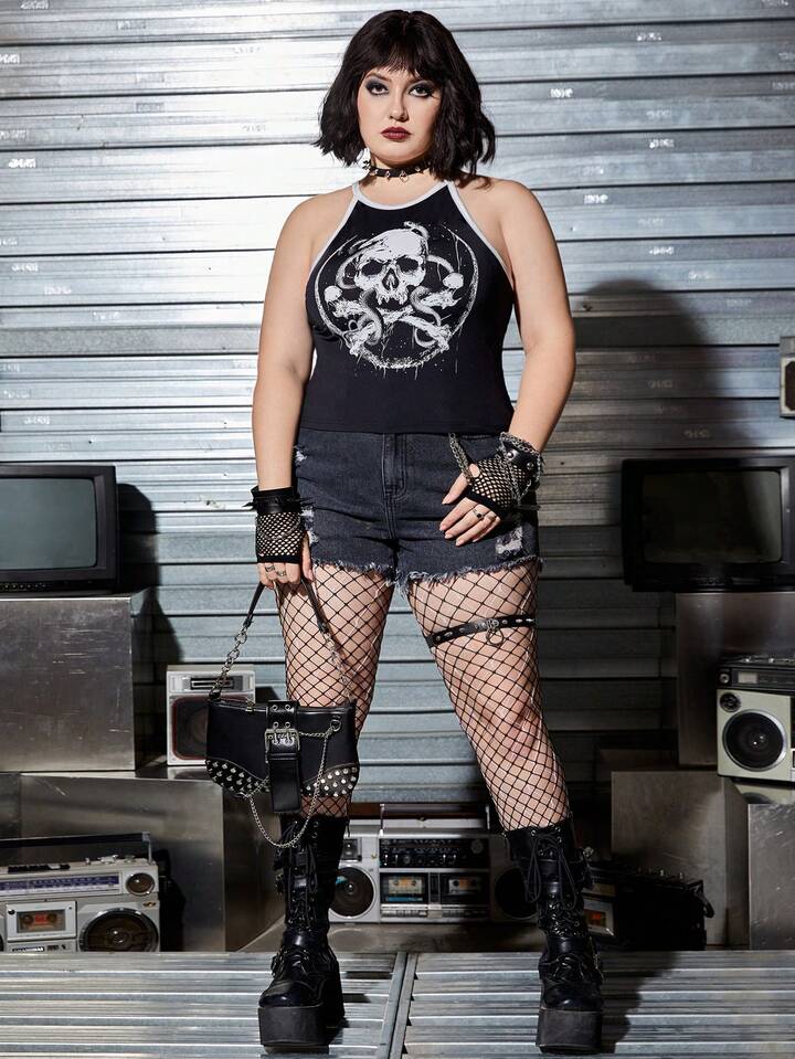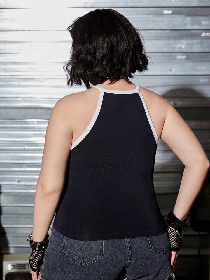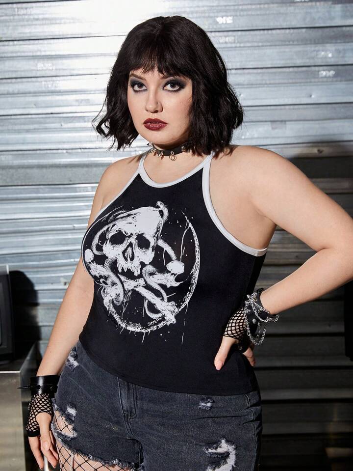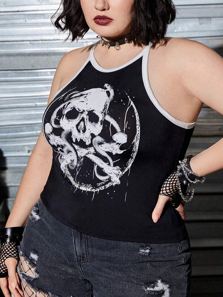 Talla grande Top de tirantes estampado de cráneo unido en contraste