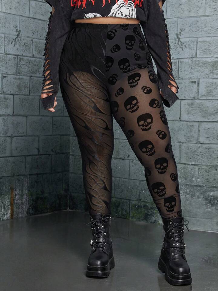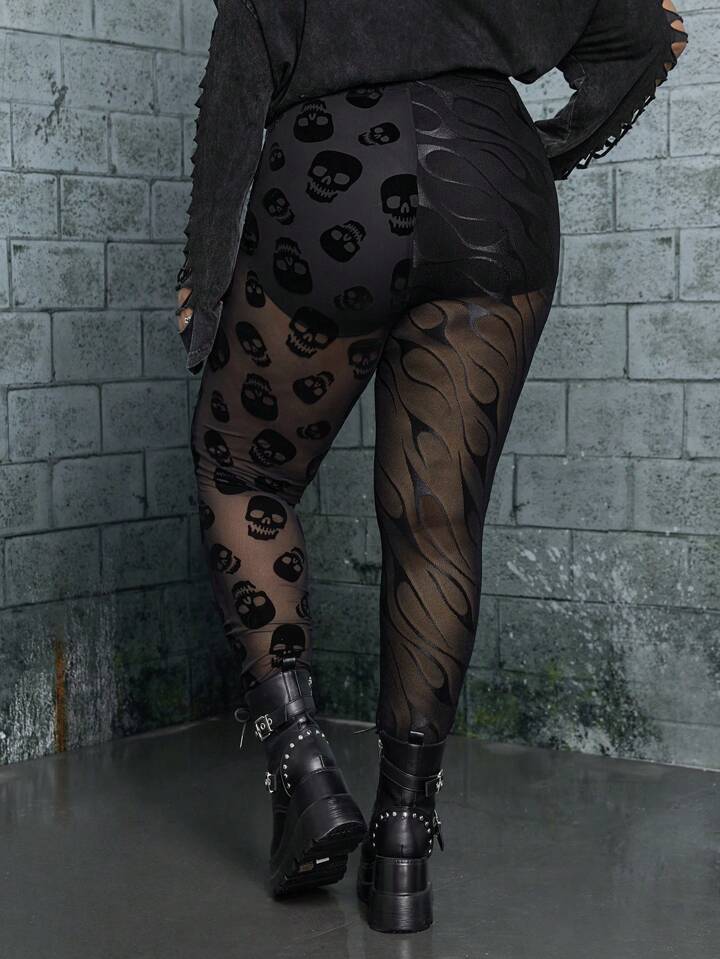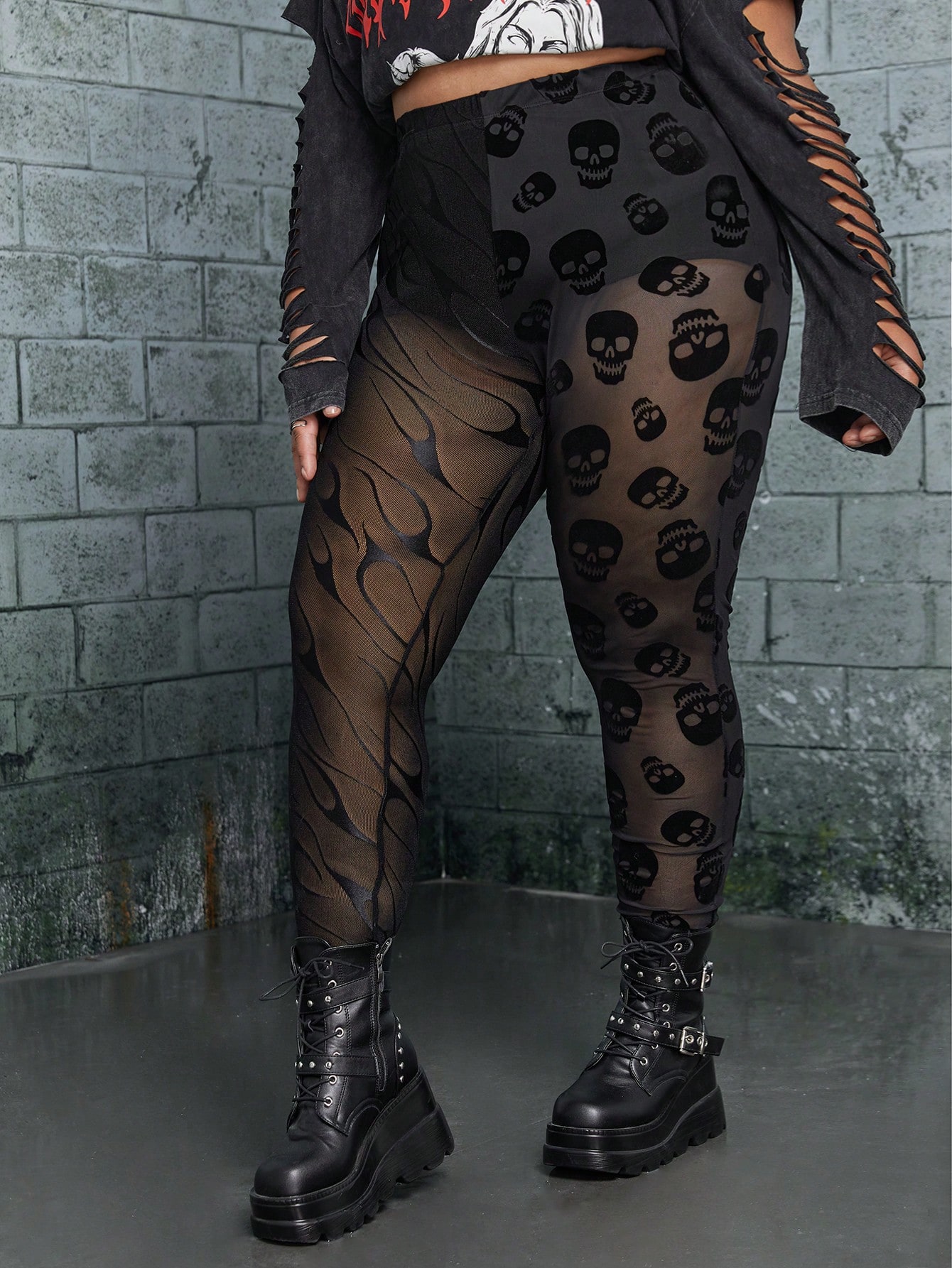 Talla grande Leggings estampado de cráneo de malla sin bragas