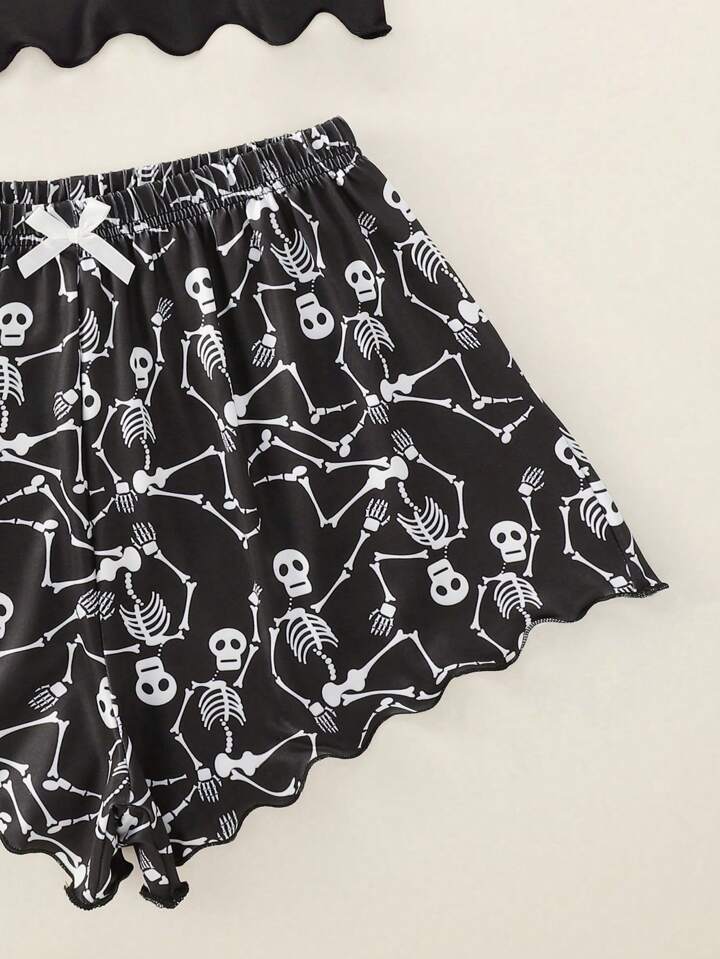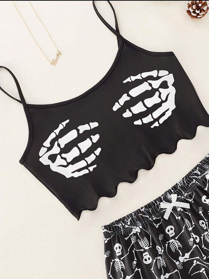 Conjunto De Pijama Estampado De Cráneo Para Tallas Grandes