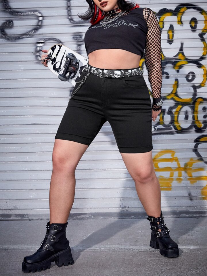 Shorts en mezclilla con bolsillo oblicuo bajo de doblez