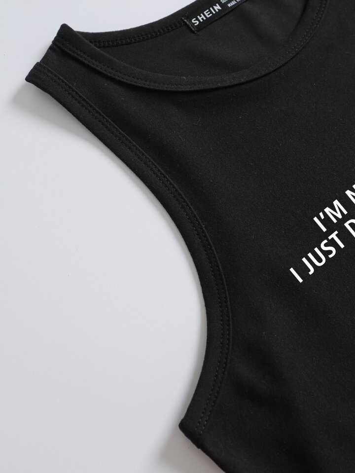 Parte superior de tirantes con gráfico de eslogan plus size, "NO SOY TÍMIDA, SIMPLEMENTE NO ME AGRADAS", top de verano para mujer