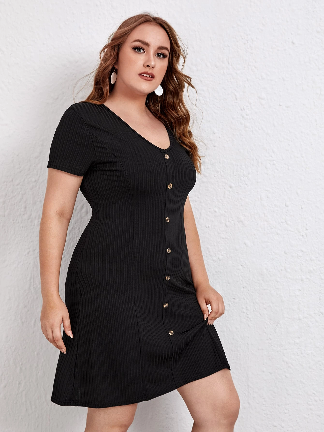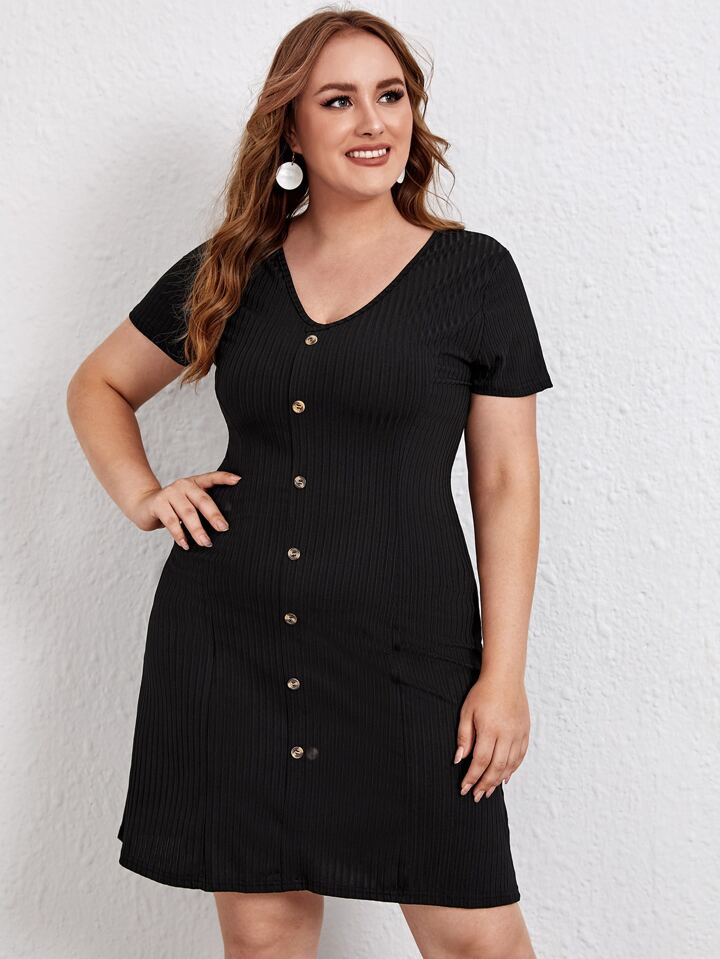 Vestidos Tallas Grandes Botón Liso Casual