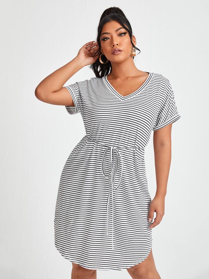 Vestido con cinturón bajo curvo de rayas