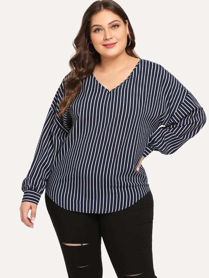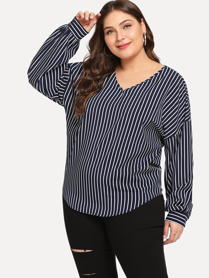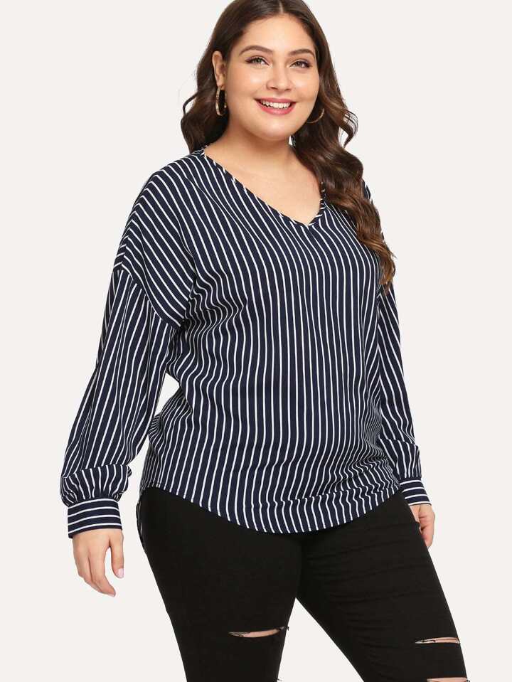 Blusa escote V de rayas-grande